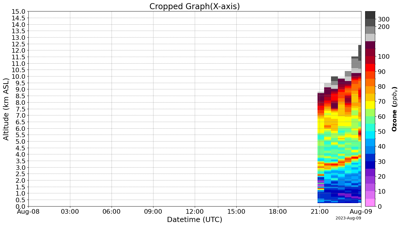 data.tolnet_curtains(xlims=["2023-08-08", "2023-08-09"], title="Cropped Graph(X-axis)")