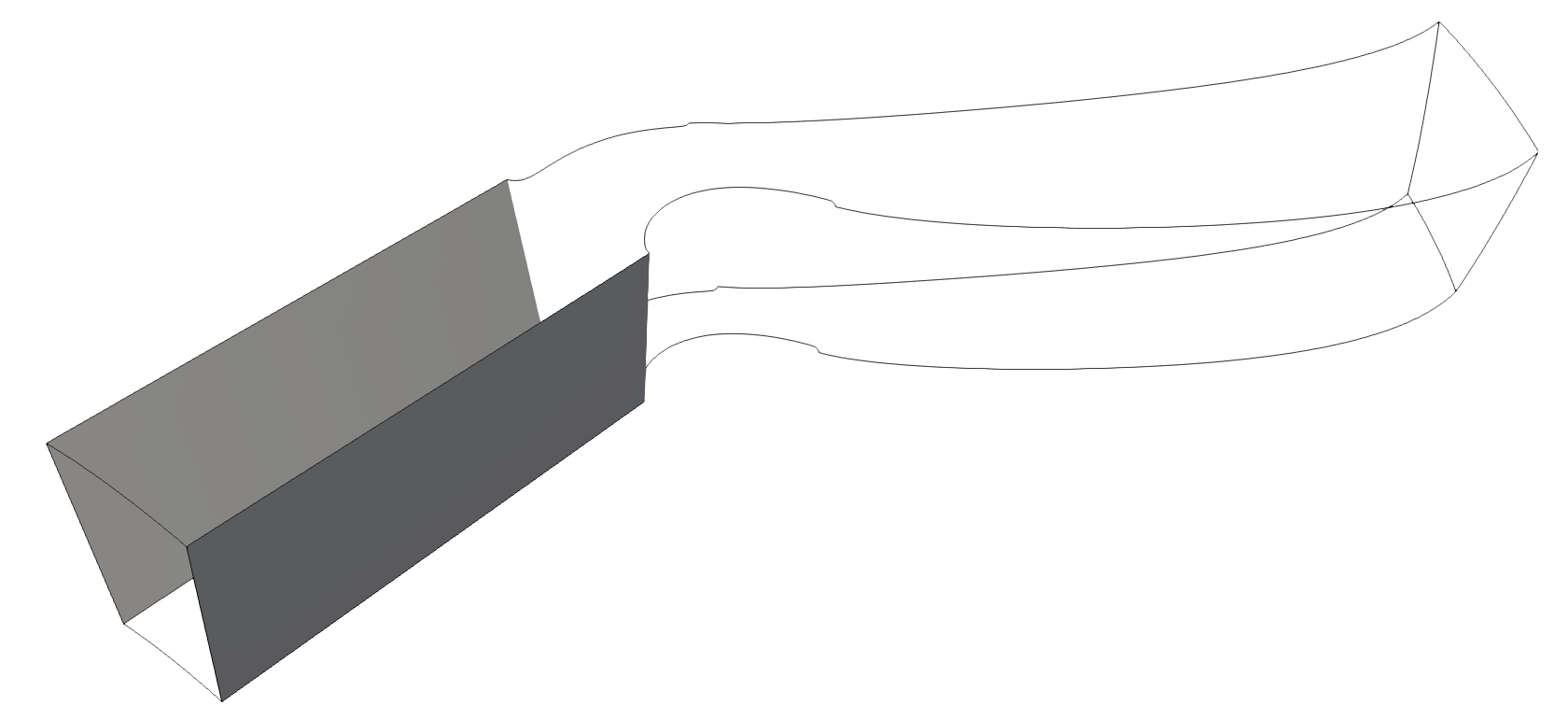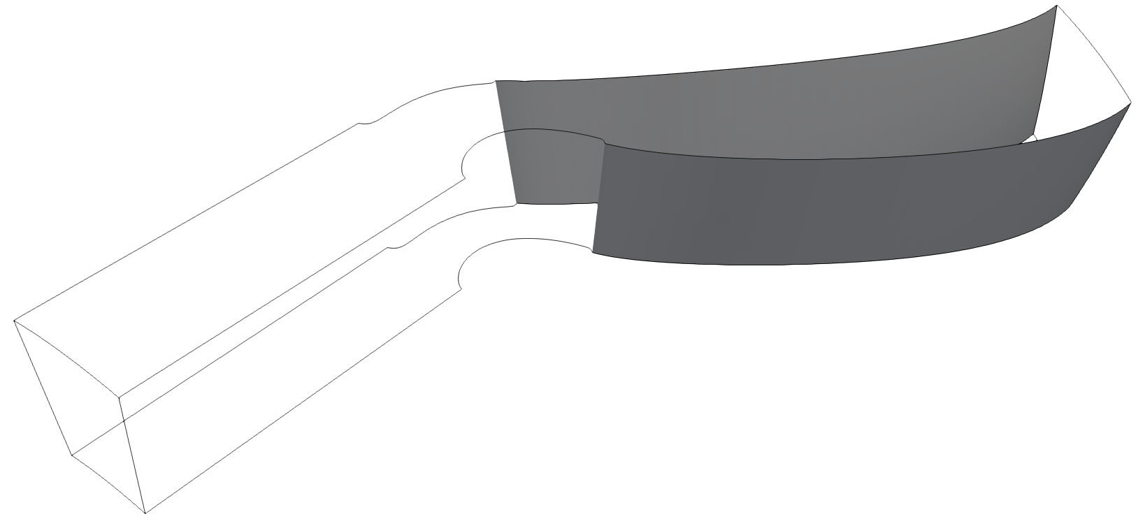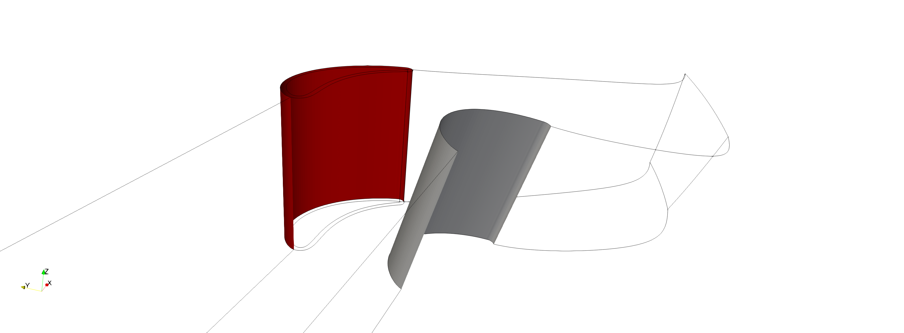 The domain above has a periodicity on the side walls and from block 1 to block 2 on the suction side. Plot3D library can find periodic surfaces. Periodic surfaces can only be found by rotation about the x-axis. The user also needs to specify which direction is periodic either i, j, or k. Combinations of outer faces are searched to find the ones that are periodic when rotated about the x-axis and in the “k” direction (default option). Below is an example on how to find periodic surfaces.