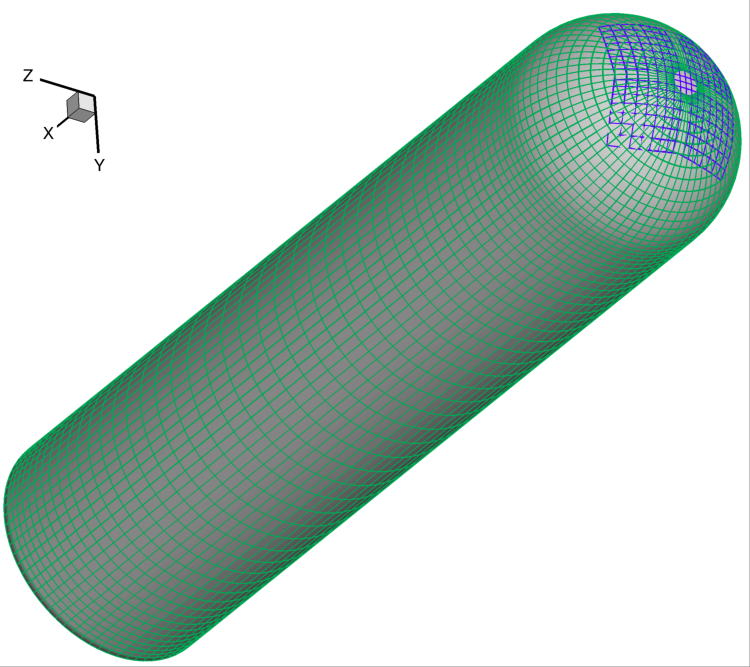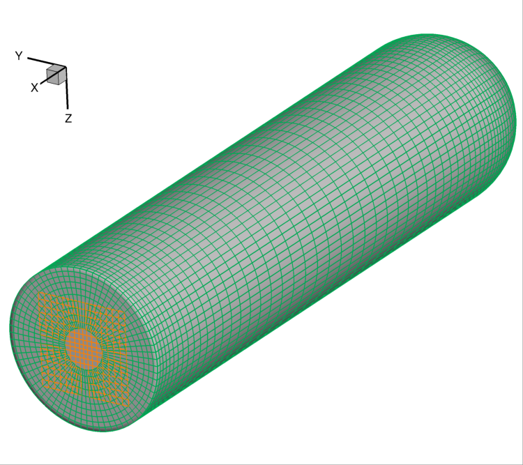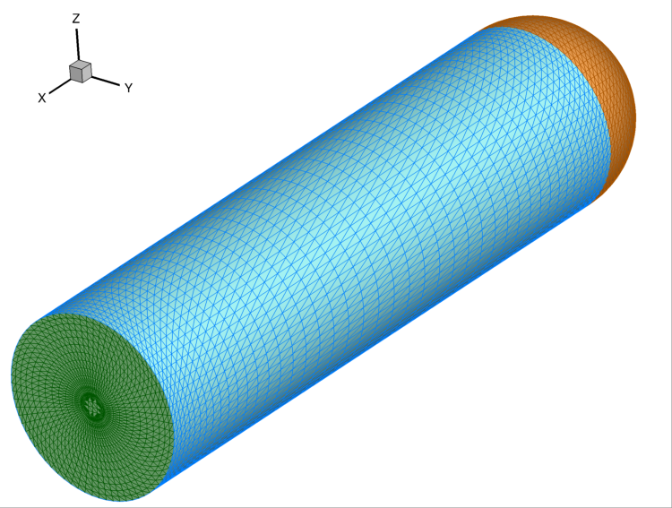 Figure 6.5 Surface tri from mixsur of OVERFLOW bullet surface grid¶