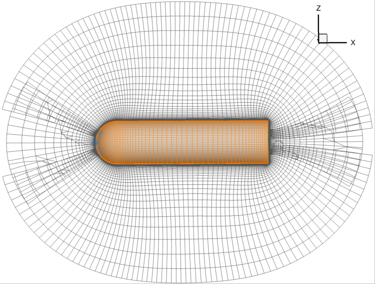 Figure 6.1 OVERFLOW volume grid slice for bullet example¶