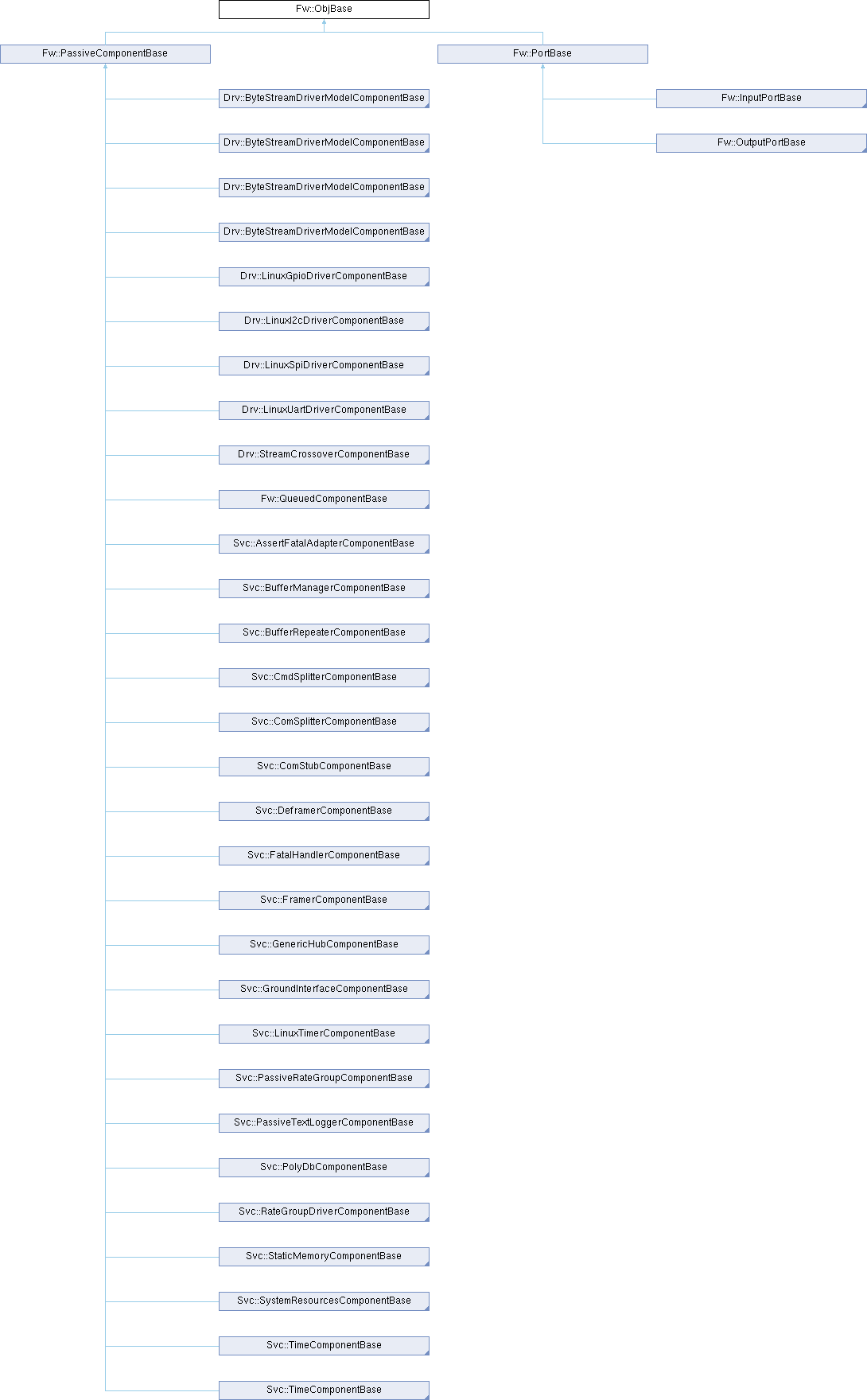 Fw::PassiveComponentBase Fw::PortBase Drv::ByteStreamDriverModelComponentBase Drv::ByteStreamDriverModelComponentBase Drv::ByteStreamDriverModelComponentBase Drv::ByteStreamDriverModelComponentBase Drv::LinuxGpioDriverComponentBase Drv::LinuxI2cDriverComponentBase Drv::LinuxSpiDriverComponentBase Drv::LinuxUartDriverComponentBase Drv::StreamCrossoverComponentBase Fw::QueuedComponentBase Svc::AssertFatalAdapterComponentBase Svc::BufferManagerComponentBase Svc::BufferRepeaterComponentBase Svc::CmdSplitterComponentBase Svc::ComSplitterComponentBase Svc::ComStubComponentBase Svc::DeframerComponentBase Svc::FatalHandlerComponentBase Svc::FramerComponentBase Svc::GenericHubComponentBase Svc::GroundInterfaceComponentBase Svc::LinuxTimerComponentBase Svc::PassiveRateGroupComponentBase Svc::PassiveTextLoggerComponentBase Svc::PolyDbComponentBase Svc::RateGroupDriverComponentBase Svc::StaticMemoryComponentBase Svc::SystemResourcesComponentBase Svc::TimeComponentBase Svc::TimeComponentBase Fw::InputPortBase Fw::OutputPortBase