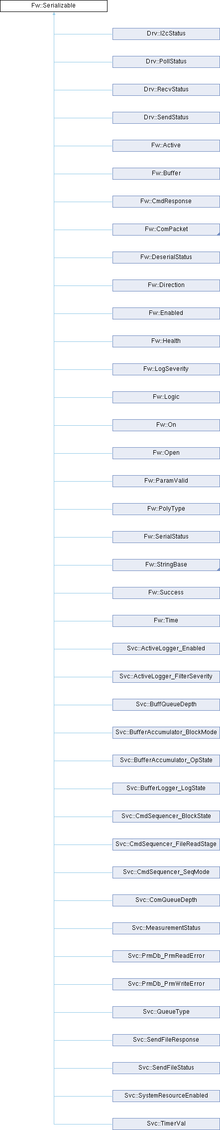 Implemented in Drv::PollStatus, Drv::RecvStatus, Drv::SendStatus, Drv::I2cStatus, Fw::CmdResponse, Fw::LogSeverity, Fw::ParamValid, Fw::Active, Fw::DeserialStatus, Fw::Direction, Fw::Enabled, Fw::Health, Fw::Logic, Fw::On, Fw::Open, Fw::SerialStatus, Fw::Success, Svc::ActiveLogger_Enabled, Svc::ActiveLogger_FilterSeverity, Svc::BufferAccumulator_BlockMode, Svc::BufferAccumulator_OpState, Svc::BufferLogger_LogState, Svc::CmdSequencer_BlockState, Svc::CmdSequencer_FileReadStage, Svc::CmdSequencer_SeqMode, Svc::BuffQueueDepth, Svc::ComQueueDepth, Svc::QueueType, Svc::SendFileResponse, Svc::SendFileStatus, Svc::MeasurementStatus, Svc::PrmDb_PrmReadError, Svc::PrmDb_PrmWriteError, Svc::SystemResourceEnabled, Fw::Buffer, Svc::TimerVal, Fw::CmdPacket, Fw::AmpcsEvrLogPacket, Fw::LogPacket, Fw::Time, Fw::TlmPacket, Fw::PolyType, Fw::StringBase, Fw::LogStringArg, and Fw::TlmString.