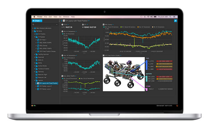 Open MCT can be adapted for planning and operations of any system that produces telemetry. While Open MCT is developed to support space missions, its core concepts are not unique to that domain. It can display streaming and historical data, imagery, timelines, procedures, and other data visualizations, all in one place.